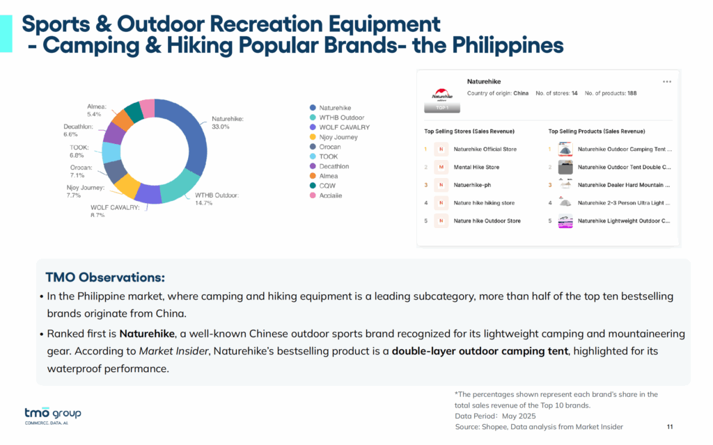 - Philippines dominance: Camping and hiking gear, together with fitness equipment, generate over 50 percent of monthly revenue.