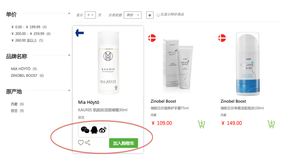 In 2016, eCommerce in China has evolved to “social eCommerce”: Chinese eCommerce shoppers are getting used to use social media as a significant channel for initiating online purchases. Having said that, Social share buttons seem essential for your eCommerce platform in China, since it both add convenience for users and help promote your products.