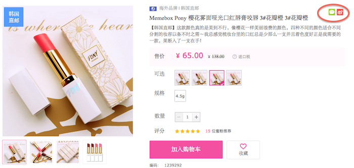 VIP was doing a decent job on social sharing buttons. Click the button below the product image, you can choose four major social media platforms to share: Q-zone, QQ, WeChat and Weibo.