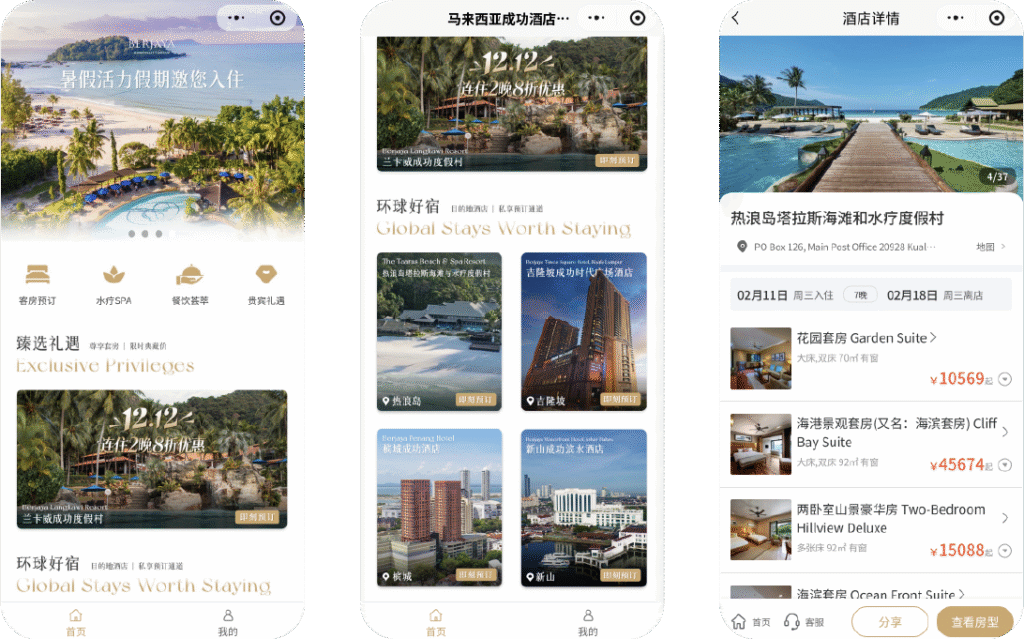 Instead of functioning as a simple booking widget, the mini program acts as a controlled environment where Berjaya can shape discovery, capture direct bookings, and surface upsell opportunities tailored to Chinese guests.