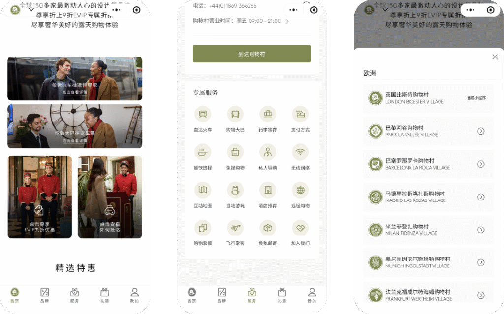 Bicester Village is a well-known luxury outlet destination in the UK, and its mini program helps Chinese travelers plan and optimize a shopping trip that can otherwise feel chaotic and time-limited. Rather than arriving with no plan and wandering between boutiques, visitors can use WeChat to structure their visit in advance and react in real time once they’re on-site.