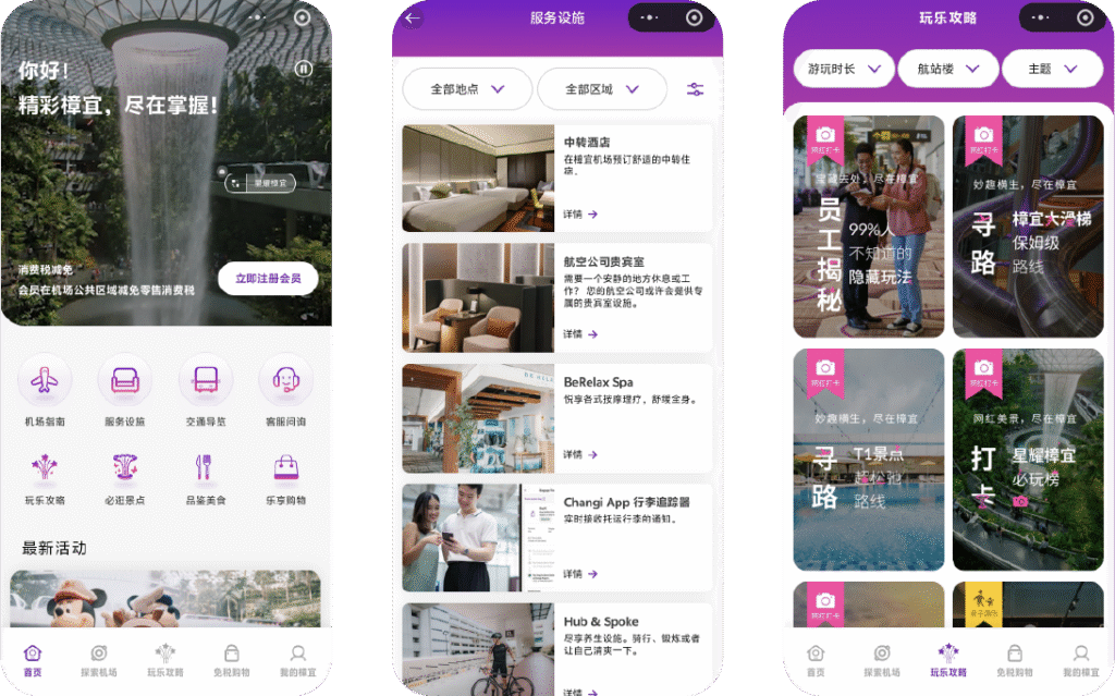 Changi Airport is one of Southeast Asia’s main hubs for Chinese travelers, and its mini program turns all facility services into a single entry point to help visitors understand where to go, what’s available, and how to use their time in the airport.
